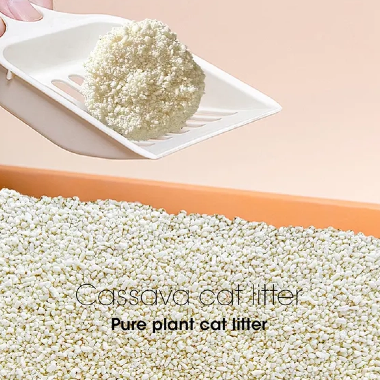 The cassava root is processed into granules or pellets that provide clumping and odor-absorbing properties. Unlike clay or silica-based litters, cassava litter is biodegradable, lightweight, and mostly dust-free. Many owners appreciate it as a natural, chemical-free option that is safe for both cats and the environment.